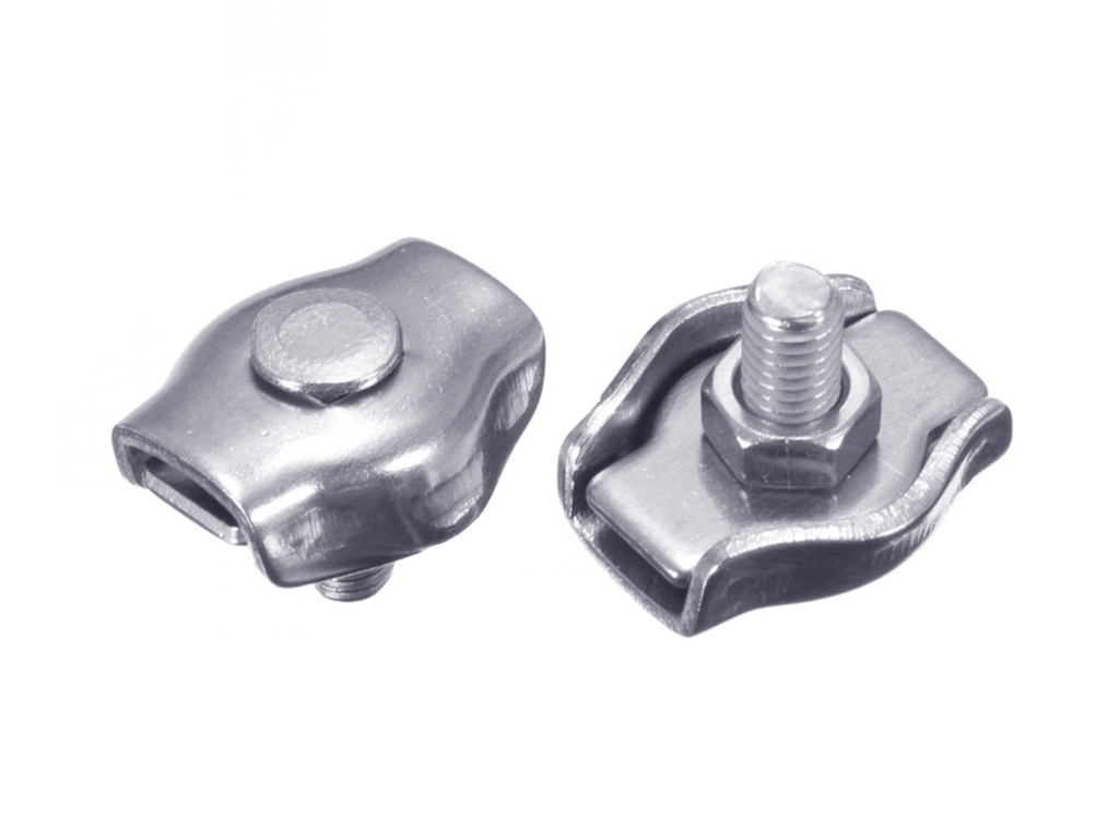 Затискач одинарний використовується як в галузі монтажу так і в побутових, господарських напрямках для скріплення тросів малих діаметрів. Затискач має дві пластини з одним гвинтом посередині. Основне його застосування це скріплення канатів між собою або формування петлі одного і того ж троса. Для скріплення тросів між собою затискачем, потрібно відкрутити гайку затискачу, зняти плоску пластину. Після, помістити в пластину з бортами - канати, які потрібно скріпити, а потім одягнути зняту раніше плоску пластину, і накручуючи гайки, затиснути ній канати. Затискач одинарний не відрізняється вантажопідйомними властивостями і не може використовуватися для формування петель вантажопідйомних стропів. Виготовляється методом штампування. Також затискач одинарний покритий шаром оцинковки, що запобігає передчасну корозію і вихід з його з ладу.